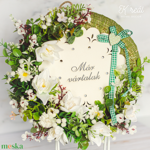 Üdezöld tavaszi virágos kopogtató - ajtódísz