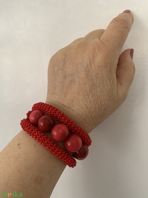 Piros fémmentes gyöngyfűzött karkötő
