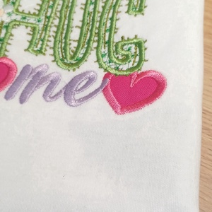 Hímzett, kaktuszos 'ölelj meg!' mintával ellátott, 100% pamut body