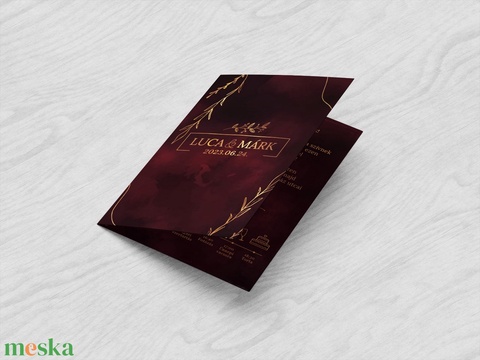 Elegáns bordó kinyithatós esküvői meghívó