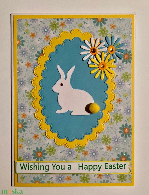 Húsvéti nyuszis képeslap, Húsvét, nyuszi, virág