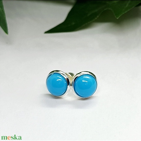 Világoskék műgyanta kaboson pötty fülbevaló