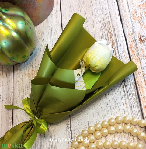 Textil tulipán csomagolva, kísérő kártyával (több szín)