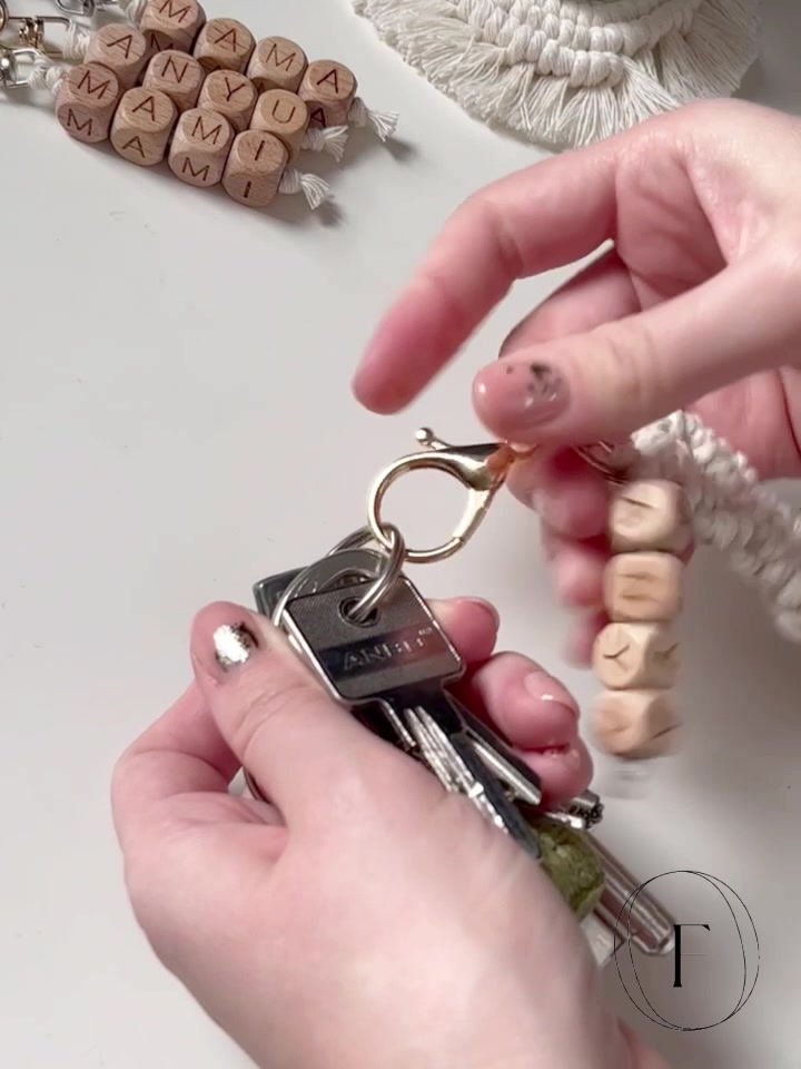 - Anyag/Összetevő pamut fonal, fém karabíner, fa gyöngy