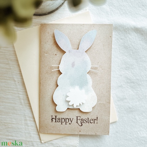 Vidám nyuszi húsvéti képeslap, 3D képeslap , borítékkal, kézzel készült húsvéti képeslap
