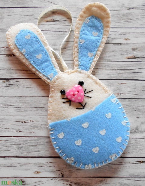 Zsebes nyuszi barkácsfilcből (világoskék-szivecskés)