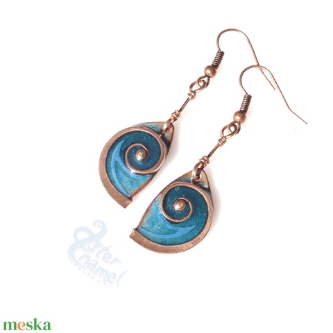 Türkizkék csigás tűzzománc fülbevaló, szem-alakú