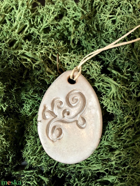 Gyöngyház fehér tojás függő dísz