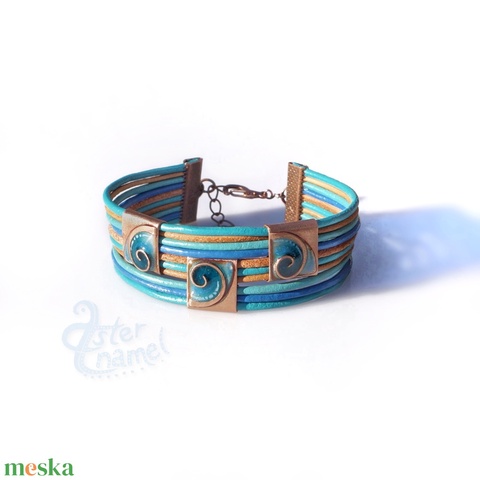 Négyzetes díszű, csigás karkötő, türkizkék, állítható méretű