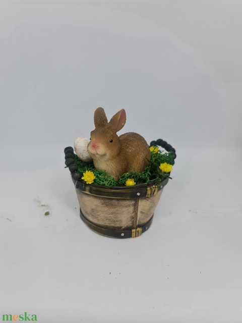 Rusztikus "Nyuszi a dézsában" – Természetes Tavaszi Asztaldísz