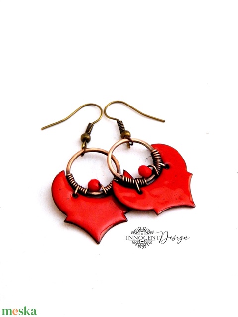 Dára - tűzzománc-réz fülbevaló - piros