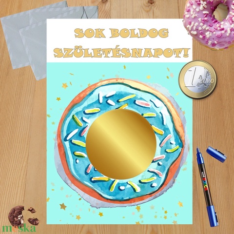 Kaparós sorsjegy egyedi felirat születésnap, évforduló, vicces ajándék Fánk
