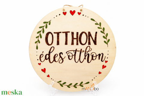 Otthon, édes otthon pirogravírozott kerek kopogtató - falikép