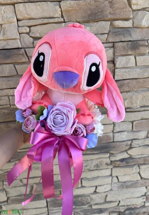 Stich ballagási csokor-rózsaszín plüssel rózsaszín