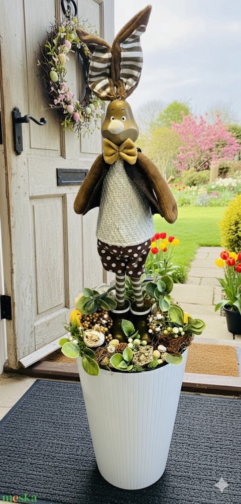 87 cm magas nyulas vendégváró dekor – fehér kaspóban, barna és natúr színekkel