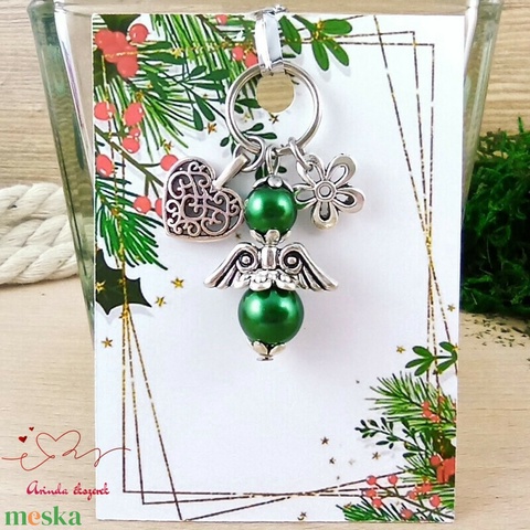 Sötétzöld tekla angyal kulcstartó táskadísz anyának mamának keresztanyának