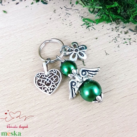 Sötétzöld tekla angyal kulcstartó táskadísz