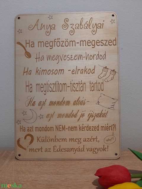 Anya szabályai fa tábla