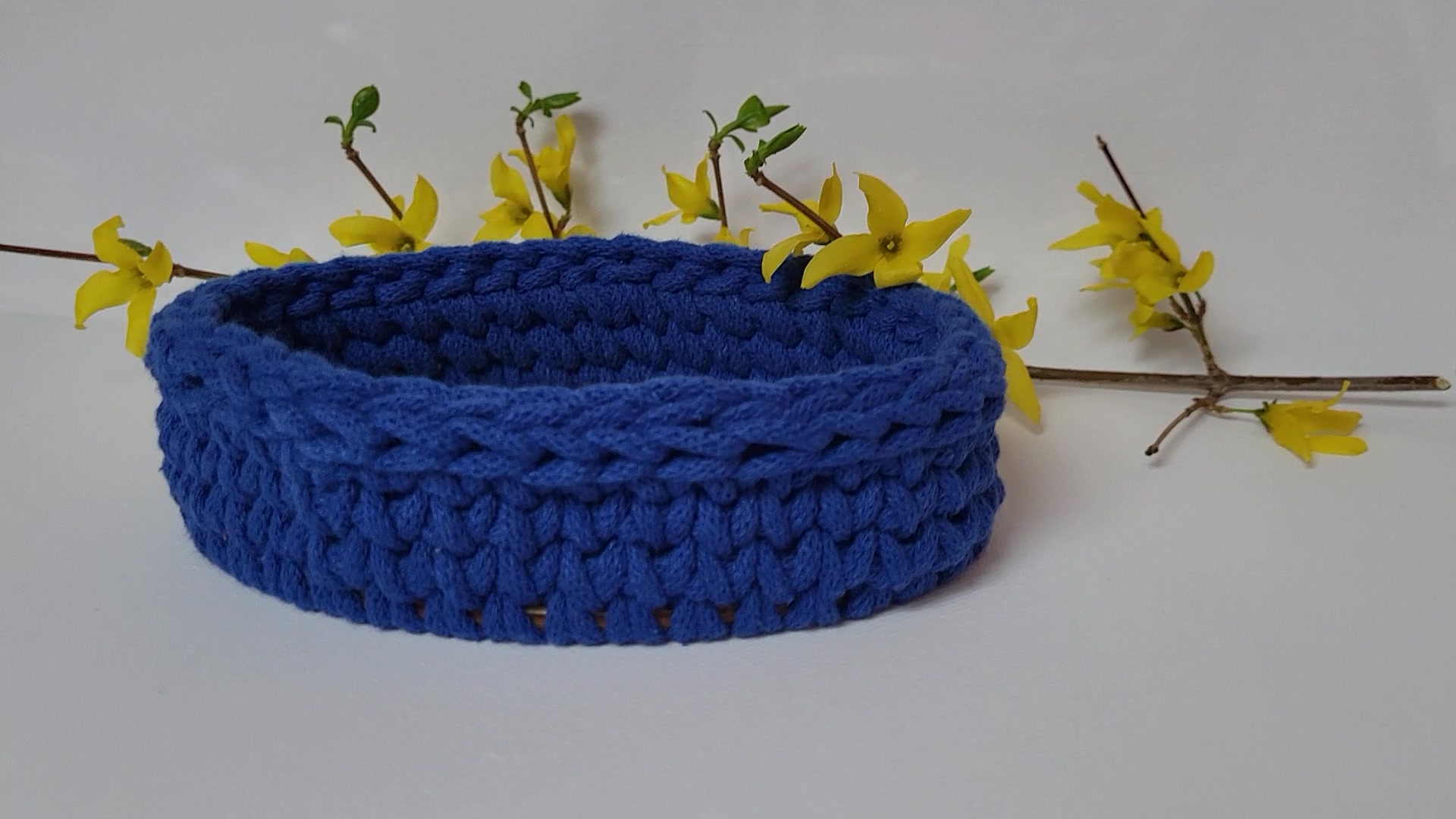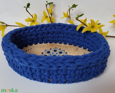 Kék horgolt kosár mandala díszítéssel, Húsvétra tojás- , csokigyűjtéshez