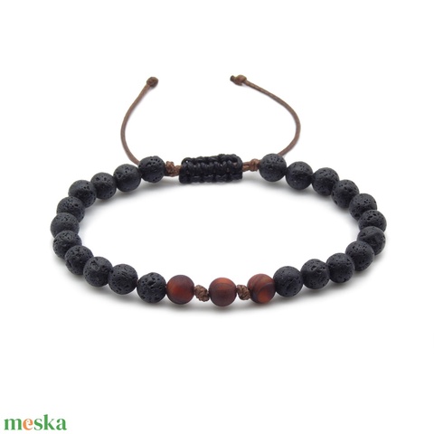 Állítható férfi gyöngy karkötő - lávakő és matt macskaszem ásvány karkötő