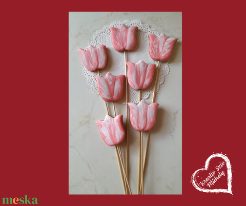 Pálcás Mézeskalács - Rózsaszín tulipán formák/ballagás/óvoda/iskola/bölcsőde/évzáró,esküvő köszönöajándék