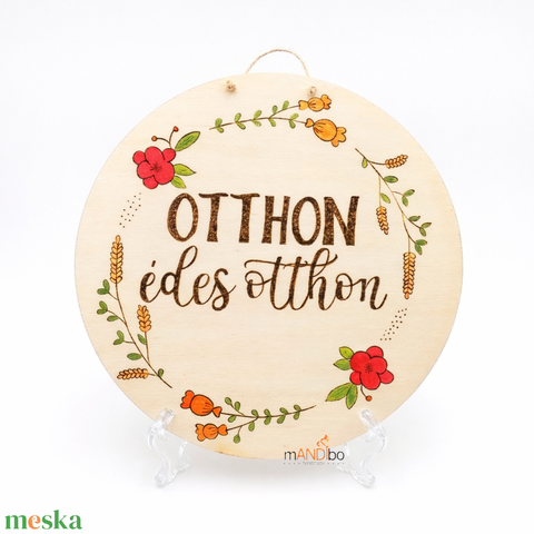 Otthon, édes otthon pirogravírozott kerek kopogtató - falikép