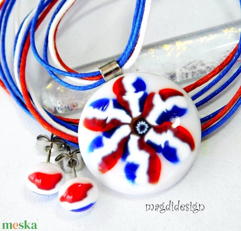 Francia design üvegékszer szett nyaklánc, stiftes fülbevaló