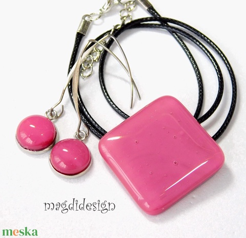 Mályvás-málna üvegékszer szett, nyaklánc, lógós fülbevaló