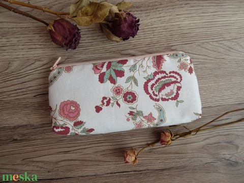 Rózsaszín virágos tolltartó, sminkes neszeszer