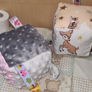 - Anyaga: pamutvászon, minky, antiallergén töltettel, csörgő