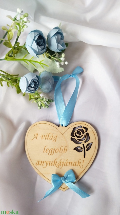 A világ legjobb anyukájának ( világoskék ) Anyák Napja- szív alakú ajándék, ajándékkísérő