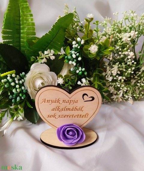 Rózsás szív (lila) Anyák Napja- ajándék, ajándékkísérő