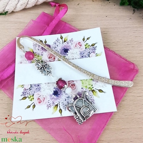 Pink hátizsák könyvjelző egyedi ajándék ballagásra évzáróra pedagógusnak születésnapra névnapra nőnek lánynak