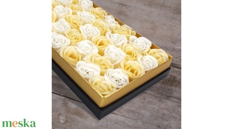 Prémium fehér krémsárga szappanrózsa doboz Valentin nap nőnap anyák napja ballagás virágdoboz