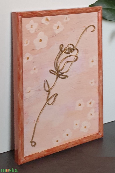 Rózsa: fémkép, huzalkép, új, egyedi, kézműves termék, ajándéknak is