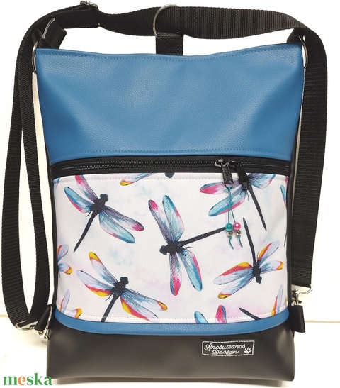 Szitakötők Fekete-Kék Alapon 3in1 Hátizsák Pakolós Rohangálós Táska