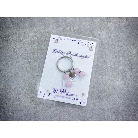 Boldog Anyák napját kulcstartó rózsakvarccal - táska & tok - kulcstartó & táskadísz - kulcstartó - Meska.hu