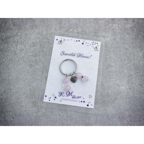 Számotokra állítottunk össze egy kedves meglepetést!"Szeretlek, Mama!"feliratos ajándékkártya rózsakvarc kulcstartóvalA kulcstartót a kártyával együtt kapjátok meg!A köszönő csomag tartalma: 1 db rózsakvarc díszes kulcstartó 1 db köszönő kártyaVan, amikor nehéz szavakat találni, vagy egészen egyszerűen hangok nélkül szeretnénk kifejezni a gondolatainkat, érzéseinket. Ebben segítenek kívánság vagy köszönő kártyáink, melyek a kiválasztott kulcstartóval együtt csodálatos ajándékok lehetnek. A laminált kívánság kártya mérete 110×80 mm.Amit a rózsakvarcról érdemes tudnod:A festetlen rózsakvarc az egész világos, szinte áttetszőtől, a ködös középrózsaszínig terjed. Az egyik legnépszerűbb kövek egyike, amely szépséges küllemének és erős gyógyhatásának köszönhető. Története a görög és római mitológiába nyúlik vissza, amely szerint a rózsakvarc Erósznak és Ámornak a szerelem Isteneinek az emberek felé nyújtott ajándéka.Lelki gyógyhatás:Már tehát az ókoriak is hittek a kő szerelem terén gyakorolt pozitív hatásaiban. A rózsakvarc a szívcsakrán keresztül segít az érzelmi blokádok feloldásában, megnyitja belső kapukat, hogy a csodát, szeretetet és szerelem formájában magunkévá tehessük. Érzelmi blokkok feloldása a szerelem lelki és testi kiteljesedését segíti. Az érzelmi gátak felszabadítása a termékenységet is magában hordozza, így ez a kő terméketlenség esetén is hasznos lehet. A rózsakvarc egyéb területeken is bizonyíthatja pozitív hatásait. Mivel segít megtalálni az életben a szépséget és a szeretet lelki egyensúlyunk helyre billentése és alkotó gondolatok megtalálása terén is hasznunkra lehet ez az ásvány. Használjuk meditáció közben haragunk leküzdéséhez és szeretetünk, szerelmünk kiteljesítéséhez.Testi gyógyhatás:Ez a rózsaszín különlegesség testi bajainkra gyógyírt jelenthet, mint a szívcsakra köve, a bőrbetegségek, asztma, allergia és vérszegénység ellen használhatjuk. Védi és erősíti a szívet, harmonizálja a szívritmust.Hozzárendelt mágikus hatás:Sokak szerint a rózsakvarc nem csak a már meglévő szerelmünk intenzívebbé tételében segíthet, hanem az áhított szerelem megtalálásában, magunkhoz vonzásában is.Csillagjegyei: Bika, Rák, MérlegCsakrája: SzívcsakraFigyelem! Az ásványokat, kristályokat az őskor óta használják a test, a lélek és az érzelmek harmonizálására. Az ókori kultúrákban kifejezetten elterjedtek voltak. Az évezredek alatt számtalan tudás és tapasztalat gyűlt össze róluk. Ásvány ékszereink leírásánál a meghatározó szakirodalom alapján készült összegzések olvashatók. Fontos! Az ásvány ékszerek viselése, az ásványok és kristályok gyógyításban, alternatív terápiaként való használata nem helyettesíti a modern orvostudományt, a gyógyszeres kezelést. Betegség esetén az öngyógyítás helyett kérjük, forduljon szakemberhez!