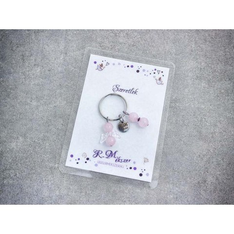 Számotokra állítottunk össze egy kedves meglepetést!"Szeretlek"feliratos ajándékkártya rózsakvarc kulcstartóvalA kulcstartót a kártyával együtt kapjátok meg!A köszönő csomag tartalma: 1 db rózsakvarc díszes kulcstartó 1 db köszönő kártyaVan, amikor nehéz szavakat találni, vagy egészen egyszerűen hangok nélkül szeretnénk kifejezni a gondolatainkat, érzéseinket. Ebben segítenek kívánság vagy köszönő kártyáink, melyek a kiválasztott kulcstartóval együtt csodálatos ajándékok lehetnek. A laminált kívánság kártya mérete 110×80 mm.Amit a rózsakvarcról érdemes tudnod:A festetlen rózsakvarc az egész világos, szinte áttetszőtől, a ködös középrózsaszínig terjed. Az egyik legnépszerűbb kövek egyike, amely szépséges küllemének és erős gyógyhatásának köszönhető. Története a görög és római mitológiába nyúlik vissza, amely szerint a rózsakvarc Erósznak és Ámornak a szerelem Isteneinek az emberek felé nyújtott ajándéka.Lelki gyógyhatás:Már tehát az ókoriak is hittek a kő szerelem terén gyakorolt pozitív hatásaiban. A rózsakvarc a szívcsakrán keresztül segít az érzelmi blokádok feloldásában, megnyitja belső kapukat, hogy a csodát, szeretetet és szerelem formájában magunkévá tehessük. Érzelmi blokkok feloldása a szerelem lelki és testi kiteljesedését segíti. Az érzelmi gátak felszabadítása a termékenységet is magában hordozza, így ez a kő terméketlenség esetén is hasznos lehet. A rózsakvarc egyéb területeken is bizonyíthatja pozitív hatásait. Mivel segít megtalálni az életben a szépséget és a szeretet lelki egyensúlyunk helyre billentése és alkotó gondolatok megtalálása terén is hasznunkra lehet ez az ásvány. Használjuk meditáció közben haragunk leküzdéséhez és szeretetünk, szerelmünk kiteljesítéséhez.Testi gyógyhatás:Ez a rózsaszín különlegesség testi bajainkra gyógyírt jelenthet, mint a szívcsakra köve, a bőrbetegségek, asztma, allergia és vérszegénység ellen használhatjuk. Védi és erősíti a szívet, harmonizálja a szívritmust.Hozzárendelt mágikus hatás:Sokak szerint a rózsakvarc nem csak a már meglévő szerelmünk intenzívebbé tételében segíthet, hanem az áhított szerelem megtalálásában, magunkhoz vonzásában is.Csillagjegyei: Bika, Rák, MérlegCsakrája: SzívcsakraFigyelem! Az ásványokat, kristályokat az őskor óta használják a test, a lélek és az érzelmek harmonizálására. Az ókori kultúrákban kifejezetten elterjedtek voltak. Az évezredek alatt számtalan tudás és tapasztalat gyűlt össze róluk. Ásvány ékszereink leírásánál a meghatározó szakirodalom alapján készült összegzések olvashatók. Fontos! Az ásvány ékszerek viselése, az ásványok és kristályok gyógyításban, alternatív terápiaként való használata nem helyettesíti a modern orvostudományt, a gyógyszeres kezelést. Betegség esetén az öngyógyítás helyett kérjük, forduljon szakemberhez!