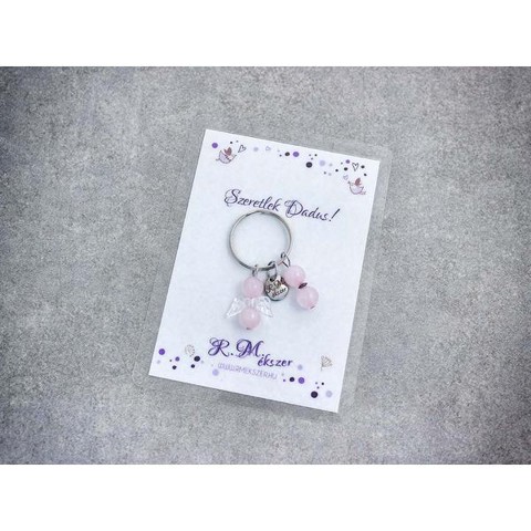 Számotokra állítottunk össze egy kedves meglepetést!"Szeretlek, Dadus!"feliratos ajándékkártya rózsakvarc kulcstartóvalA kulcstartót a kártyával együtt kapjátok meg!A köszönő csomag tartalma: 1 db rózsakvarc díszes kulcstartó 1 db köszönő kártyaVan, amikor nehéz szavakat találni, vagy egészen egyszerűen hangok nélkül szeretnénk kifejezni a gondolatainkat, érzéseinket. Ebben segítenek kívánság vagy köszönő kártyáink, melyek a kiválasztott kulcstartóval együtt csodálatos ajándékok lehetnek. A laminált kívánság kártya mérete 110×80 mm.Amit a rózsakvarcról érdemes tudnod:A festetlen rózsakvarc az egész világos, szinte áttetszőtől, a ködös középrózsaszínig terjed. Az egyik legnépszerűbb kövek egyike, amely szépséges küllemének és erős gyógyhatásának köszönhető. Története a görög és római mitológiába nyúlik vissza, amely szerint a rózsakvarc Erósznak és Ámornak a szerelem Isteneinek az emberek felé nyújtott ajándéka.Lelki gyógyhatás:Már tehát az ókoriak is hittek a kő szerelem terén gyakorolt pozitív hatásaiban. A rózsakvarc a szívcsakrán keresztül segít az érzelmi blokádok feloldásában, megnyitja belső kapukat, hogy a csodát, szeretetet és szerelem formájában magunkévá tehessük. Érzelmi blokkok feloldása a szerelem lelki és testi kiteljesedését segíti. Az érzelmi gátak felszabadítása a termékenységet is magában hordozza, így ez a kő terméketlenség esetén is hasznos lehet. A rózsakvarc egyéb területeken is bizonyíthatja pozitív hatásait. Mivel segít megtalálni az életben a szépséget és a szeretet lelki egyensúlyunk helyre billentése és alkotó gondolatok megtalálása terén is hasznunkra lehet ez az ásvány. Használjuk meditáció közben haragunk leküzdéséhez és szeretetünk, szerelmünk kiteljesítéséhez.Testi gyógyhatás:Ez a rózsaszín különlegesség testi bajainkra gyógyírt jelenthet, mint a szívcsakra köve, a bőrbetegségek, asztma, allergia és vérszegénység ellen használhatjuk. Védi és erősíti a szívet, harmonizálja a szívritmust.Hozzárendelt mágikus hatás:Sokak szerint a rózsakvarc nem csak a már meglévő szerelmünk intenzívebbé tételében segíthet, hanem az áhított szerelem megtalálásában, magunkhoz vonzásában is.Csillagjegyei: Bika, Rák, MérlegCsakrája: SzívcsakraFigyelem! Az ásványokat, kristályokat az őskor óta használják a test, a lélek és az érzelmek harmonizálására. Az ókori kultúrákban kifejezetten elterjedtek voltak. Az évezredek alatt számtalan tudás és tapasztalat gyűlt össze róluk. Ásvány ékszereink leírásánál a meghatározó szakirodalom alapján készült összegzések olvashatók. Fontos! Az ásvány ékszerek viselése, az ásványok és kristályok gyógyításban, alternatív terápiaként való használata nem helyettesíti a modern orvostudományt, a gyógyszeres kezelést. Betegség esetén az öngyógyítás helyett kérjük, forduljon szakemberhez!