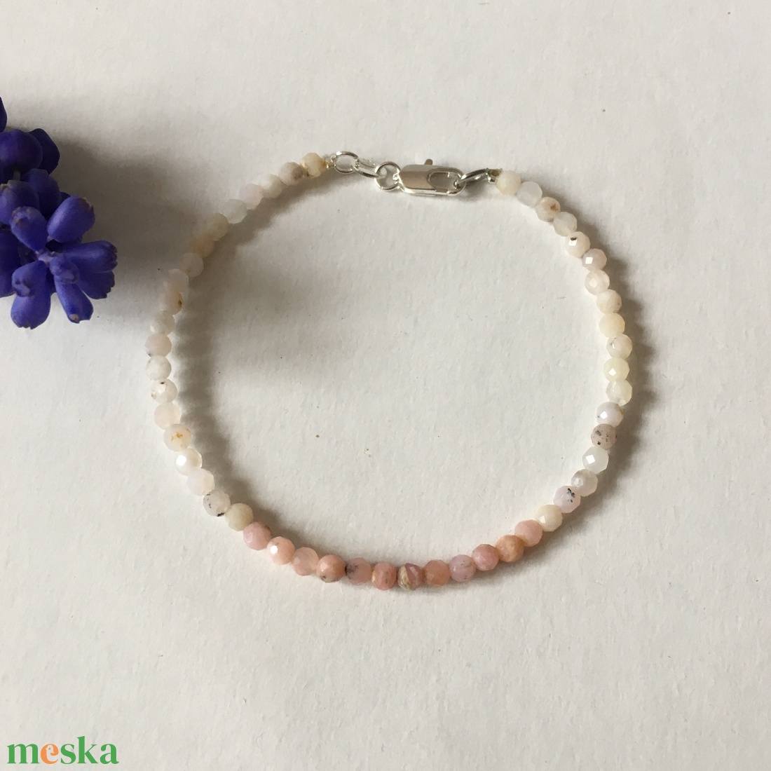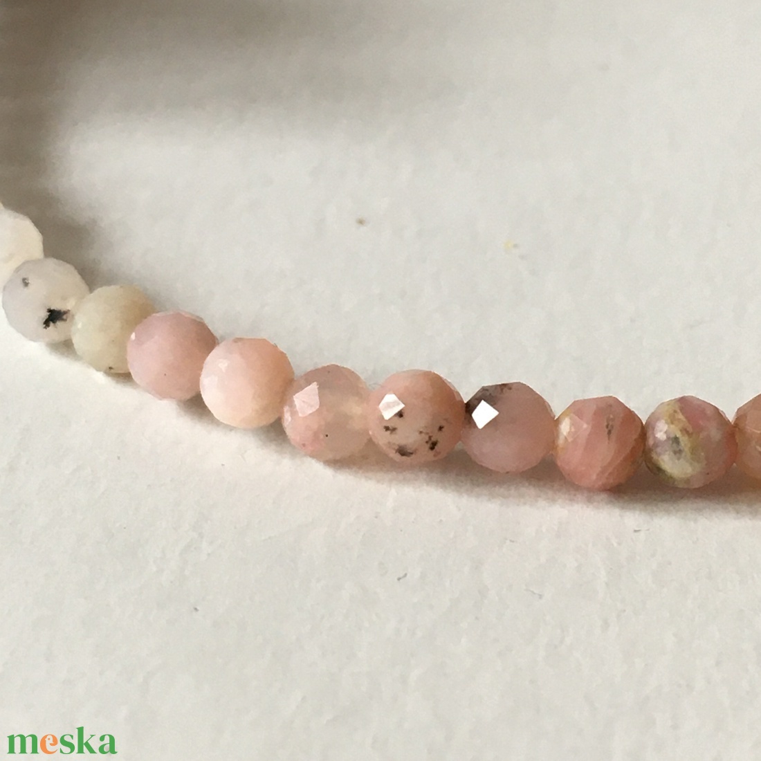 3,2mm-es fazettált rózsaopál szemekből fűzött minimál karkötő.