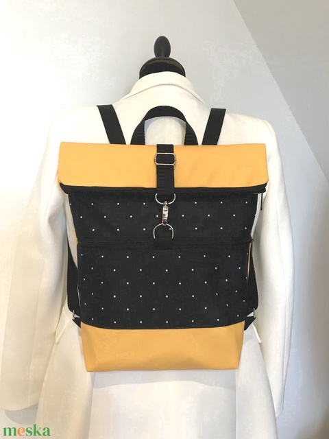 - Anyaga: táskamerevítő, pamutvászon, cipzár, heveder, fémszerelékek, vízálló szövet, textilbőr