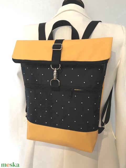 Rolltop Okker-fekete pöttyös-Hátizsák-Vízálló-Hátitáska