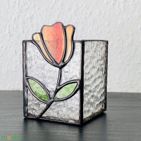 Pipacsos dobozka - Tiffany színes üveg