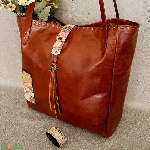 Női bőr táska, Valódi bőr válltáska, Nagy shopper táska, Francia stílusú női táska