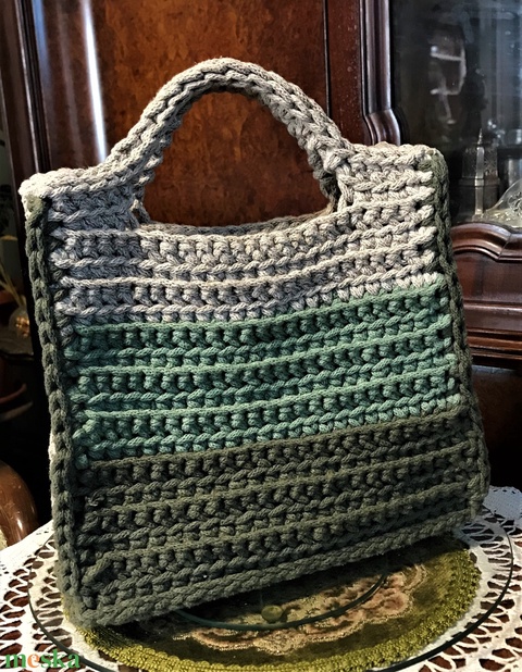 Horgolt táska, zsinórfonalból készült, közepes méret
