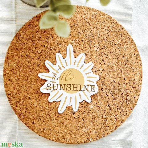 Hello napsütés, kézzel készült matrica, tavaszi matrica, ajándék matrica, vízálló matrica