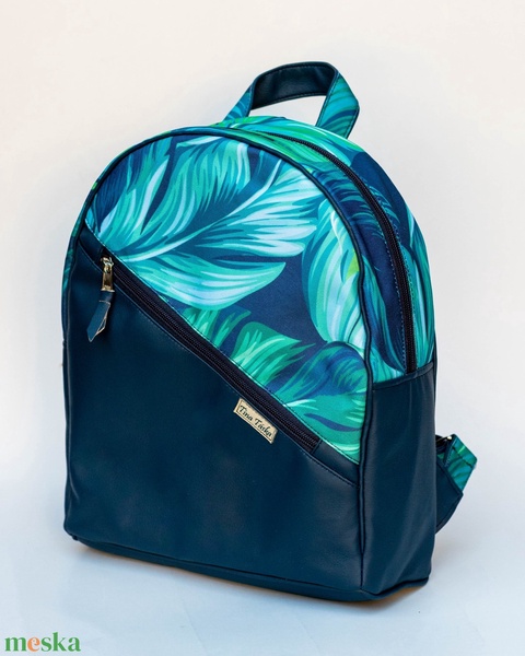 Egyedi tervezésű, sötétkék - türkiz pálmaleveles hátizsák
