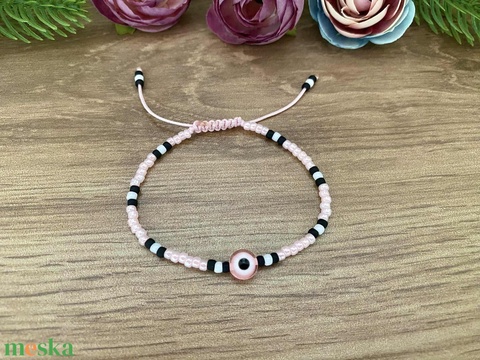 - Anyaga: vigyázó szem gyöngy, japán kásagyöngy, viaszos zsinór