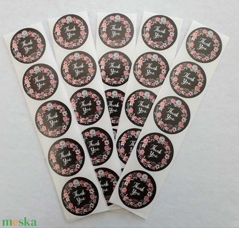 "Thank you" feliratos matrica, rózsaszín virágos - 10 db/csomag (3021)